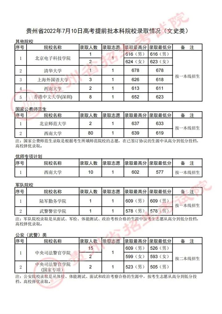 7月10日,贵州省招生考试院公布了当日高考录取情况,具体如下: