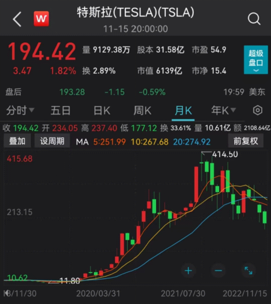 二级市场方面,截至11月15日收盘,特斯拉报194.42美元,年内累计下跌44.81%,股价接近“腰斩”,最新总市值6139亿美元,马斯克的个人身价也随着特斯拉市值蒸发而大幅缩水。