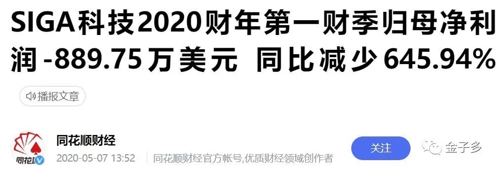 据2020财年第一财季归属于母公司普通股股东净利润为-889.75万美元,同比下降645.94%;营业收入为261.98万美元,同比下跌74.95%。