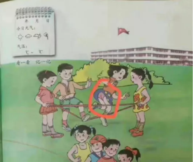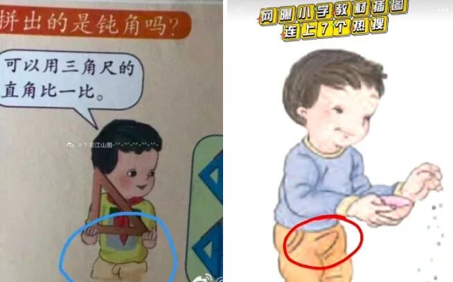 明明应该是严肃内敛的教科书,插画里却有男孩的下半身出现了“辣眼睛”的情况。