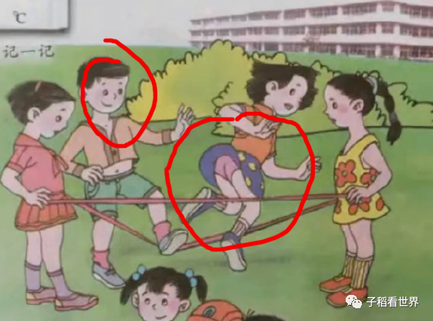 更过分的是,竟然将二战日本“自杀队”的零式战机搬进教材。你看,日本自己教科书都不敢干的事,却出现在中国的课本里!看看在美国的课本里,会不会到处都有五星红旗的身影?看看许多儿童课外读物,爸爸和爷爷都是白人,各种精英职业也都是白人。还有这个,赤裸裸地宣传“好美好美的蓝眼睛”,“好帅好帅的黄头发”。整天忙着指责巴拉巴拉小魔仙,不应该染头发,为何儿童读物里的错误,却没人来管?课本中的插画,人物嘴歪眼斜,一脸病容,全无精气神,哪有一丝一毫的儿童天真烂漫、活泼可爱的健康形象?反而像是得了低智、畸形的唐氏综合征。整天读着这种病态课本,难道不会影响孩子们的身心健康?1840年之后,英国鸦片荼毒中国人民,外国列强反而污蔑中国人是“东亚病夫”。新中国之后,我们正迎来中华民族的伟大复兴,他们却在学生的课本里,堂而皇之地将中国孩子画成“病人”!所以,子稻认为我们不仅要批判毒教材,使用这种教材的家长更需要使用法律手段维护儿童的合法权益。![]()