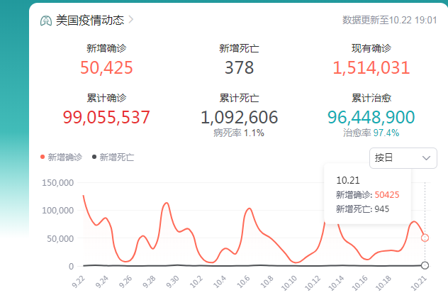 哎哟喂,累计确诊9900万人,死了109万人。