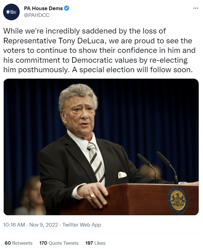 虽然获得特朗普支持的235人中有216人获得了最终的胜利(仅有19人没有竞争得过民主党人),但是失败的人却丢掉了一些关键的摇摆州。有些州是共和党的铁盘,哪怕共和党推出一条狗竞选议员,也能获胜的——就像在民主党铁盘内,两名已经死亡的民主党候选人都能获得高票当选一样。11月8日,美国宾夕法尼亚州的前国会议员托尼·德卢卡和田纳西州众议员芭芭拉·库珀分别以86%和73.1%的高支持率当选议员,然而这两人已经分别于2022年10月9日和10月25日去世了。关于这个问题,网络上有一些阴谋论,说民主党又作弊了。宾夕法尼亚州选举法第917条规定,在初选日之前,如果有候选人死亡,那么可以提出新的候选人。但是,该选举法没有规定在选票印制之后出现候选人死亡的情况。该州的印刷选票的日期定在9月28日,而那时民主党的候选人还没有死亡,所以即使他在10月9日去世了,但是也无法把他从名单上剔除,最终就导致了死人当选的情况。在共和党和民主党的铁盘内,一条狗都能当选,死人当选也就不足为怪了。11月9日,宾夕法尼亚州众议院委员会在官方推特发布声明称:“虽然我们对托尼·德卢卡众议员的去世感到无比悲痛,但我们自豪地看到,选民们继续通过追随他的当选来显示他们对他的信任和他对民主价值观的承诺。一场特别选举将很快进行。”但是,即使进行特别选举,共和党也不可能有翻盘的机会的,因为那是民主党的铁盘。我们都知道,在2016年之前,特朗普就是一个地产商,没有任何从政经验,在政坛上没有自己的势力,导致在执政期间遇到很多的困难。由于在政坛上没有自己人,特朗普上台后,在组阁的过程中,任用了很多建制派的人,而那些人根本不听特朗普的,于是特朗普只能不断地炒掉那些人——从国家安全顾问、白宫新闻发言人、国防部长、司法部长到国务卿等,特朗普几乎把整个内阁清洗了一遍。后来,在民主党弹劾特朗普的时候,共和党内又出现了7名“叛徒”,差点就让民主党在参议院内获得三分之二的选票,这把特朗普吓出一身冷汗。再后来,特朗普连任失败,愤怒的支持者占领了白宫,佩洛西为首的民主党在特朗普总统任期仅剩几十天的情况下,再次对特朗普发起弹劾。而这次,共和党内共有35名众议员“反叛”。所以,从特朗普的角度来说,绝对不能再让这种情况出现了,太可怕了,稍不留神,就可能“尸骨无存”!由于特朗普在老百姓中拥有庞大的支持率,所以他必须找到“志同道合”或听自己话的人,把他们都送到议员的位置上,否则即使2年后他再次当选为美国总统,那也依旧是在刀尖上起舞,随时都可能“丧命”。所以,这次中期选举,特朗普给高达235个支持者拉选票。