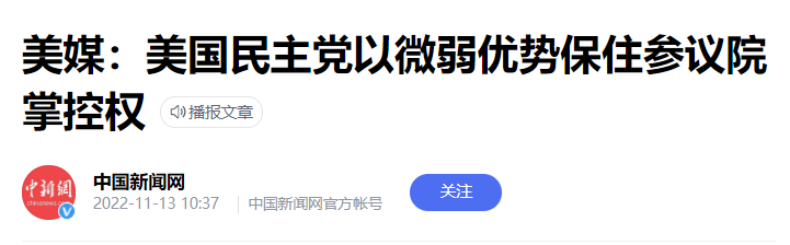 11月13日,美国中期选举参议院的结果出来了:民主党优先达到50票,保留住了参议院多数党的席位。
