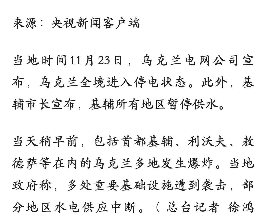 不但基辅的电力系统彻底瘫痪了!