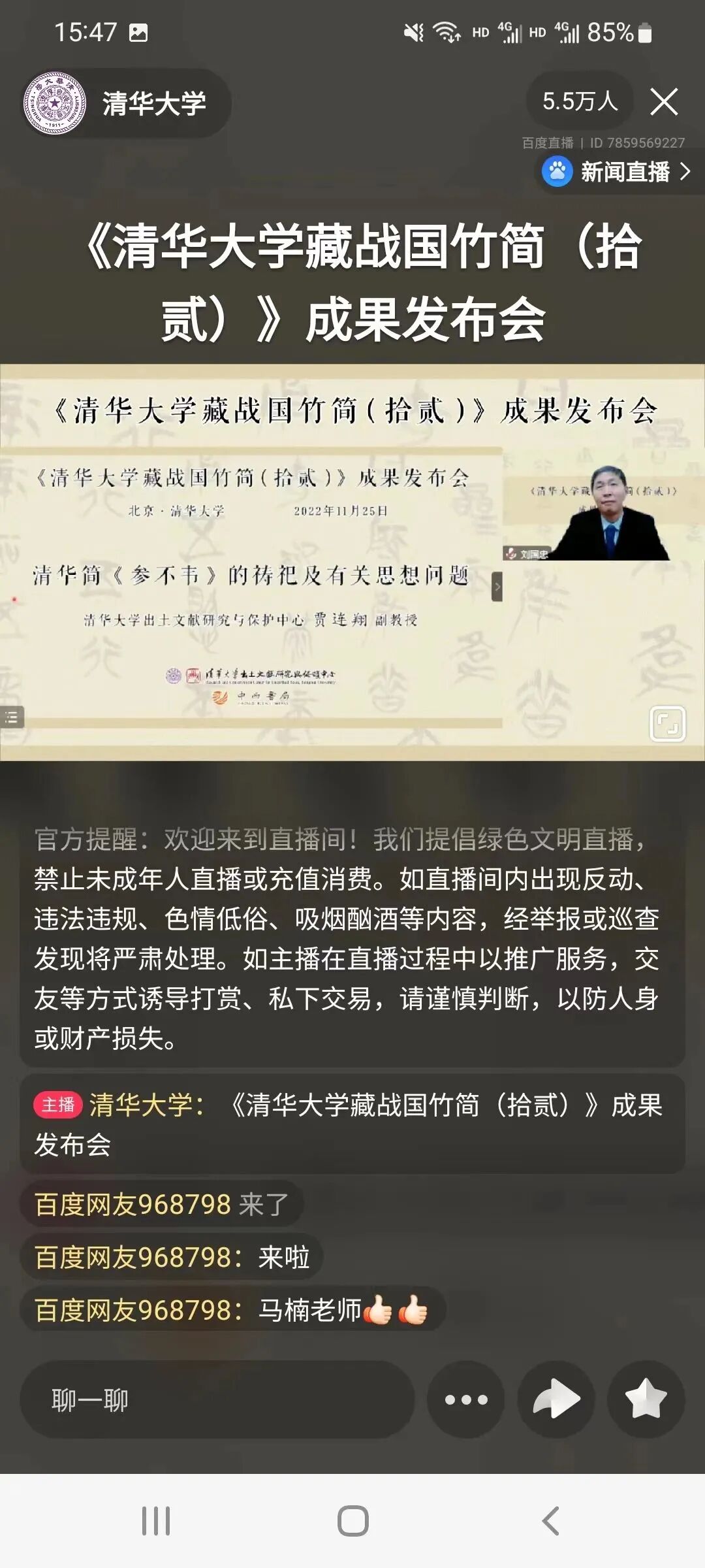 11月25日,清华大学出土文献研究与保护中心、中西书局与“学堂在线”合作,以线上方式开启了《清华大学藏战国竹简(拾贰)》成果发布会的全球直播。包括海内外著名学者在内的近五十万人次线上观看了发布会。