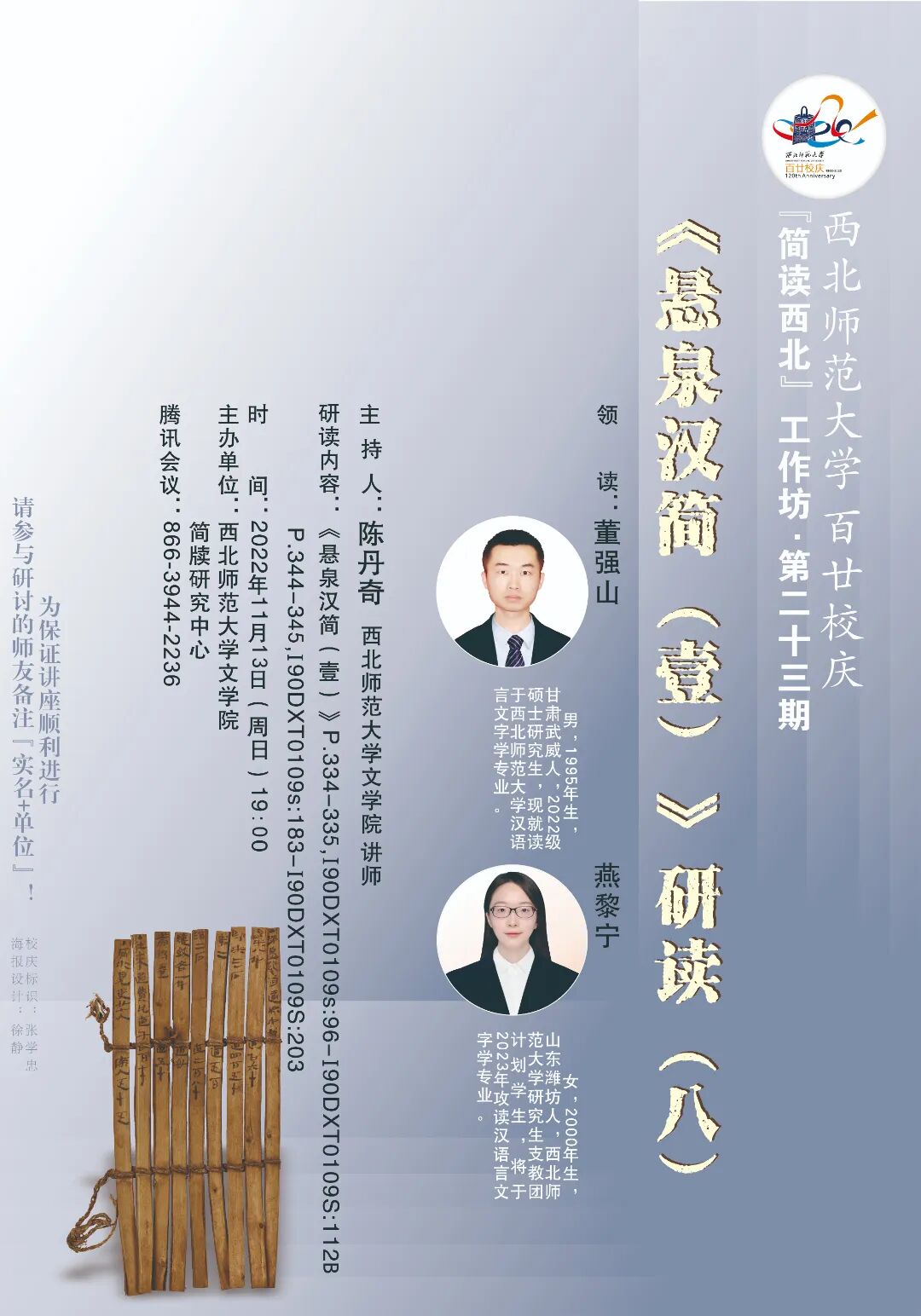 研读丨“简读西北”工作坊第17期《悬泉汉简(壹)》研读(五),10.23周日晚19:00纪要丨“简读西北”工作坊 第15期:《悬泉汉简(壹)》研读(四)成功举办!