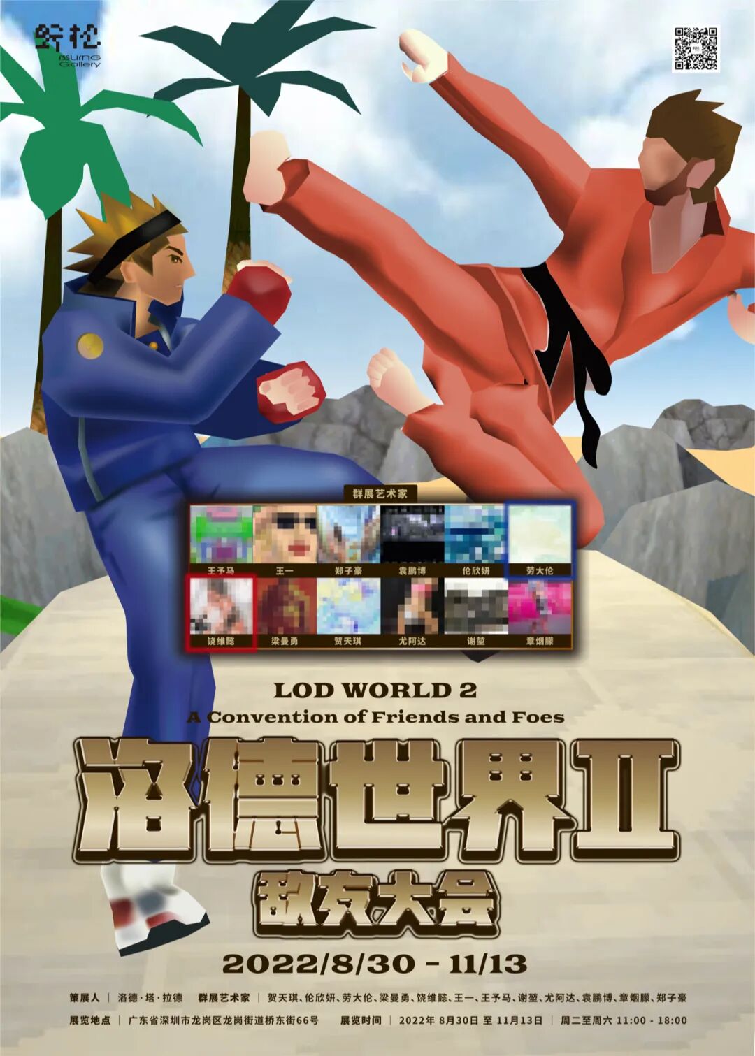 注释:“洛德世界”,是LOD world的中文音译。LOD(levels of detail)来源于三维游戏建模,在MAYA等三维软件中均可设置。LOD运用在三维游戏中,而三维游戏大爆发时期又集中传播了这种“虚拟世界图像本质”。此功能的调节使得画面产生模块内部图像模糊清晰交替以及外部边缘清晰 方圆变幻。本此展览提及的艺术家年龄上与中国网游大爆发时期吻合,且在作品上,审美上、造型上与调整LOD层次的效果十分接近,因此以“洛德世界LOD World”作为展览名称。