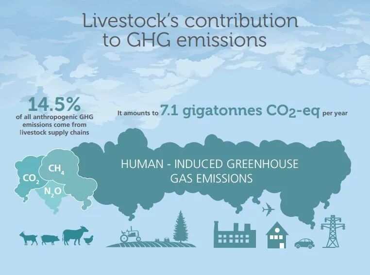 Among the greenhouse gases produced by global human activities, the food production industry accounts for one-quarter to one-third of the greenhouse gas emissions. Most of which come from animal husbandry.