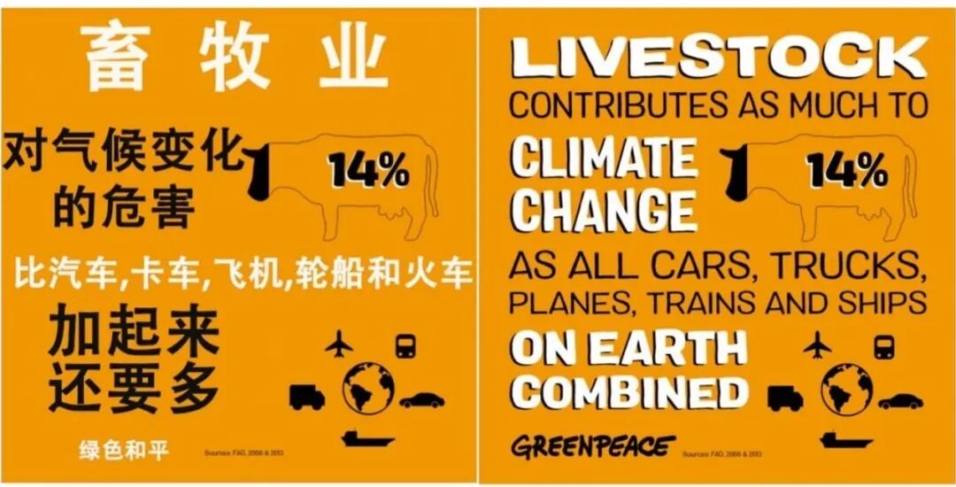联合国粮农组织发布的研究报告显示,畜牧业排放的温室气体比世界上所有交通工具——包括汽车、卡车、飞机和火车——排放的总和还要多。