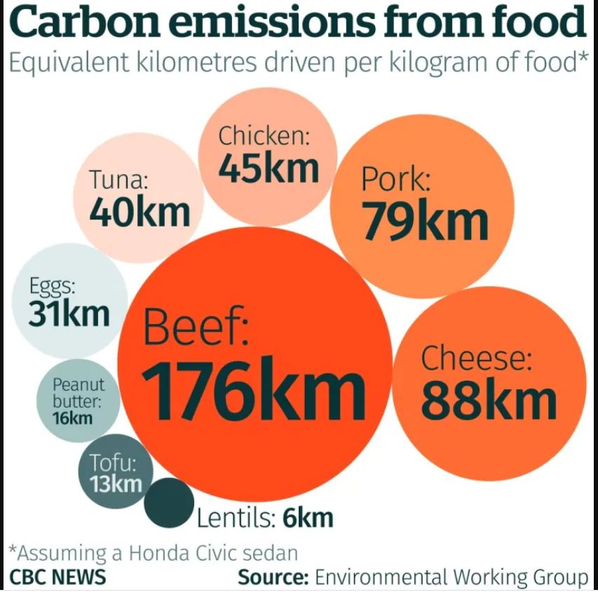 每克蛋白质的甲烷排放量:水牛:404g;肉牛:295;牛奶:87g;猪肉:55g;鸡肉:35g