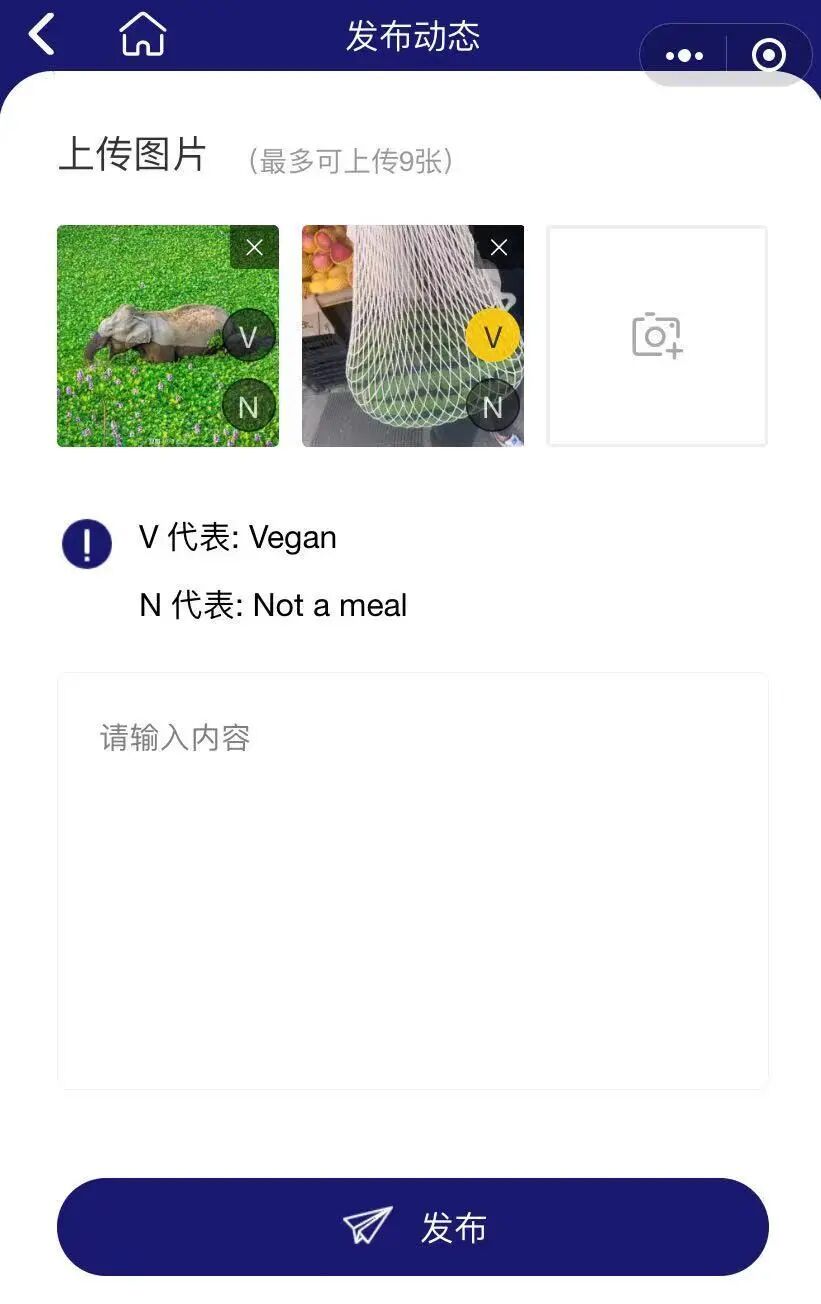 第二步:每天上传带有“V(Vegan)”标签的食物;