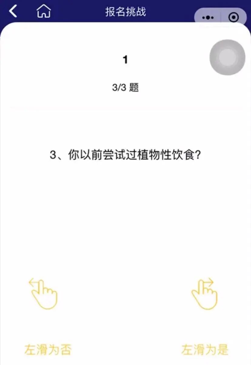 1. 进入小步Vegan小程序,在首页点击“报名挑战”;