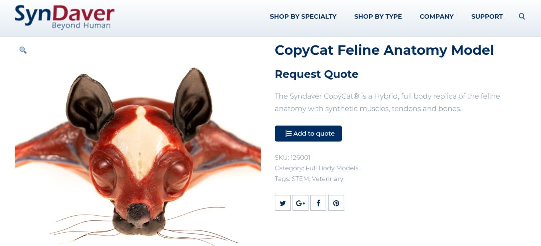 In addition to synthetic frogs, the company also has synthetic dogs and cats for scientific studies & learning.