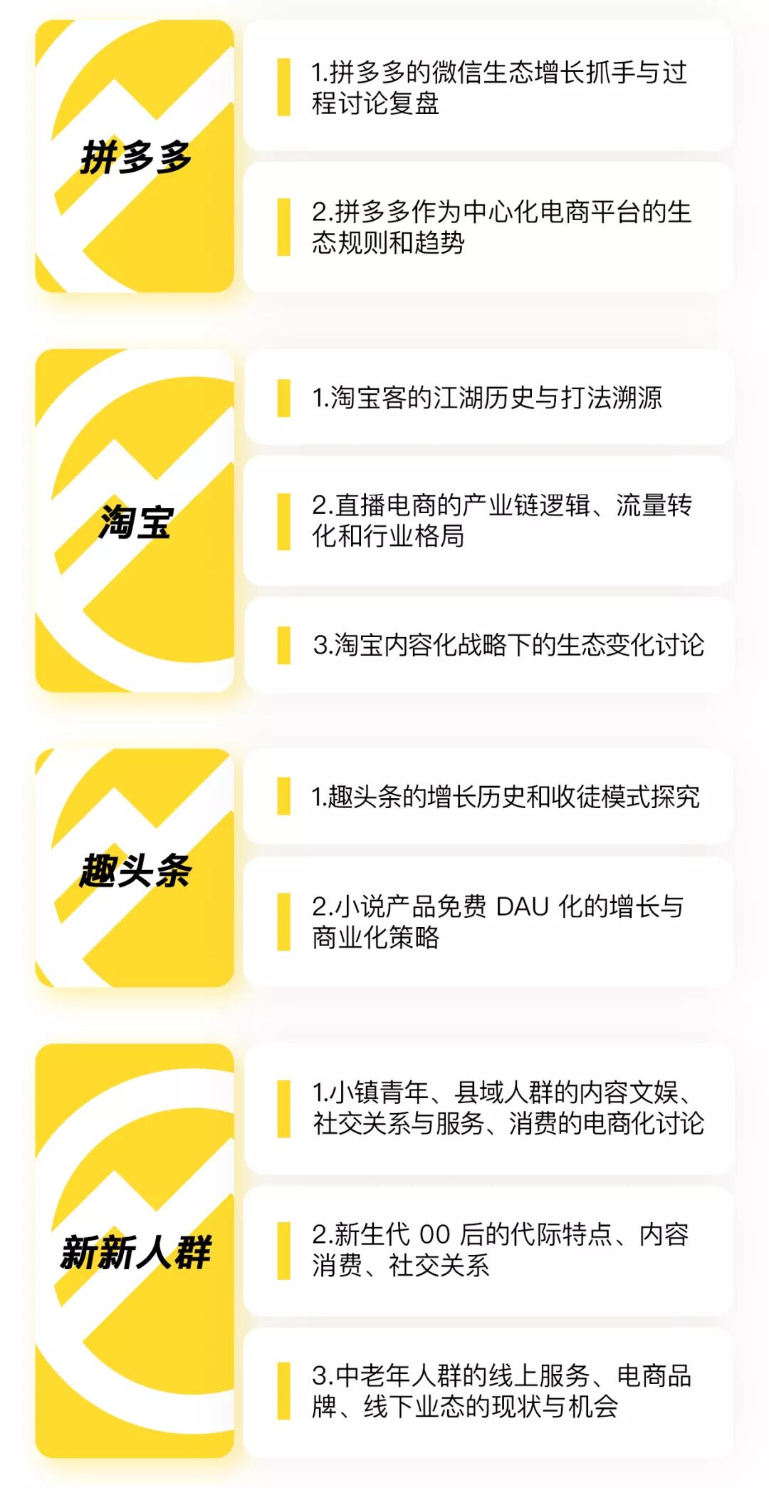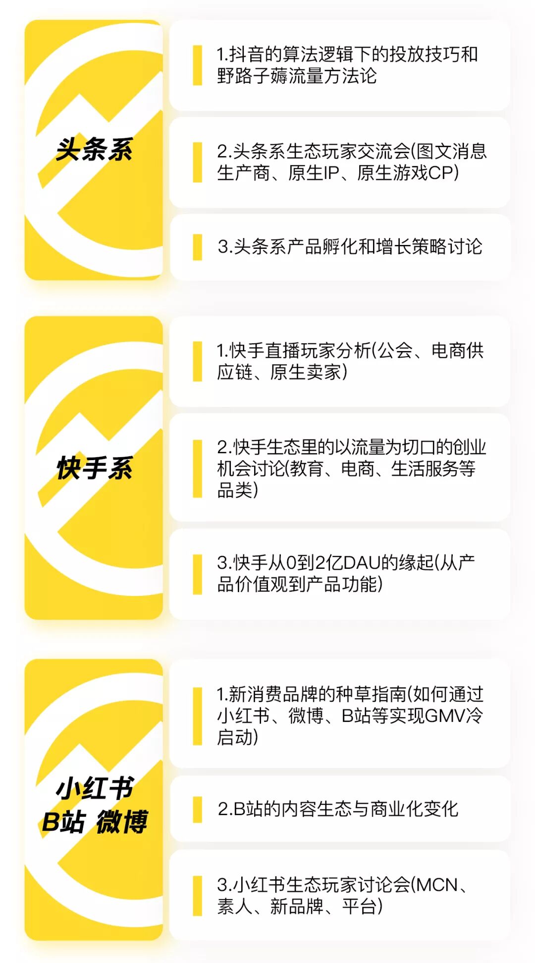 下面是我们已经确定的主题们,针对「新平台」「新流量」「新品牌」,请阅: