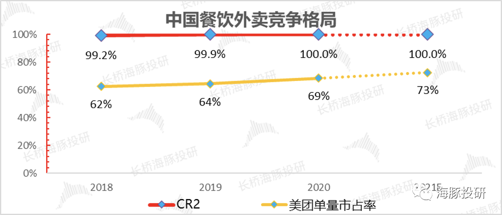 但在中国,从2017年饿了么收购百度外卖,餐饮外卖市场就成了一个龙二式微、龙大狂奔、市场愈加垄断的竞争格局。