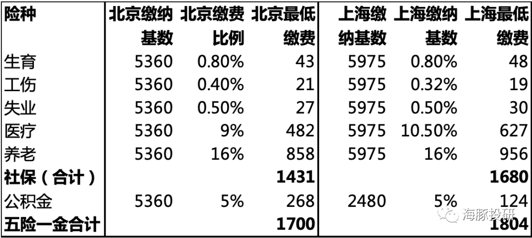 在月缴纳金额上,海豚君选取北京上海两个月缴纳金额较高的城市来参考,中性假设下美团为职工社保型骑手缴纳1000元社保。