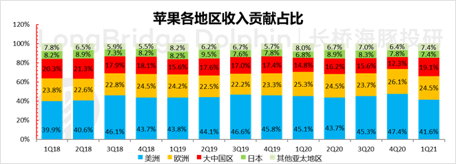 基于此市场预期已被不断拉升,自秋季首场发布会到现在涨幅已有 25%,市值接近 2.5 万亿。目前市场已将四季度 iPhone 全球出货量预期提升至了 7500 万至 8000 万部,2021 年的出货量同比增长预期拉到了 20% 以上。但同时关键零部件,入激光雷达元器件、电源&显示芯片等,供应链压力也在加大,或许会让延迟 iPhone 的出货释放,12 月季度出货未必足够强劲。但 iPhone 12 带来苹果手机换机超级大周期的说法目前已经是相对一致的预期。在这种情况下,海豚投研认为,本季度财报应该重点观察:- 疫情导致财务预测可见度降低,苹果最近三个季度已不再提供具体季度指引,但在苹果在与分析师的沟通中仅表示手机业务在 12 月季度有望实现正增长,市场对该业务的增速预期一般在 10% 以内,那么实际出来会是怎样的?