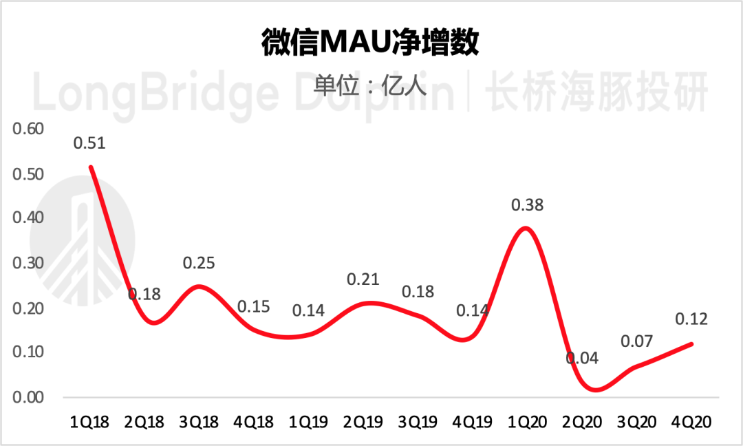Q4腾讯实现总营收1337亿元人民币,同比增长26.4%,略超市场一致预期。在如此体量的收入规模下,还能全年保持25%以上的收入增长,实属不易!所谓鹅厂的“超级印钞机”美誉,名不虚传。从收入结构上来看,各业务占比基本保持稳定。本季度金融科技业务、广告业务增长突出,增速相比上季度进一步提升。赚钱如此轻松的主要原因当然还是在于吸金的游戏收入。本季度手游表现不用说,如期领跑全行业,同比增长51%。除了《王者荣耀》、《和平精英》等老牌明星手游外,于本季度初上线的《使命召唤》国际服也在海外地区受到热捧。本季度海外游戏流水同比增长43%,创收近100亿,已占到总营收的25%,相比上一年度增加了2 pct。端游方面,本季收入同比下滑了4%,当然主要还是整体行业趋势如此。端游早已迈入成熟发展期,随着今年各大厂商对云游戏平台的陆续加码,端游和主机游戏能否再一次老树开花?我们拭目以待。而从递延收入来看,今年一季度的游戏流水在去年同期高基数上,有望继续保持强劲增长。毕竟最近腾讯几款爆款的手游《天涯明月刀》、《使命召唤手游》国服去年末才发布,主要流水贡献应该还是在今年Q1春节期间,吸金能力应该不亚于几款老牌热游。还记得年初张小龙的《你我的微信十年》演讲的轰动,看到本季财报,让我惊叹的是,微信的用户规模竟然还能增长!这恐怕要归因于视频号和小程序的功劳。去年下半年以来微信视频号的不断完善,一扫微视在短视频市场的节节败退。视频号弯道超车,背靠微信这颗超级流量大树,再一次入局短视频流量之争,一时之间,短视频竞争格局愈加波诡云谲。除了视频号,小程序也未落后,整体交易额同比增长100%。(更多微信运营数据在张小龙的微信十周年演讲已透露,本文不再赘述)这里,我要重点提及的是微信商业价值的逐步落地。以社交广告为例,本季度通过加载率的提升,增加效果广告与商家小程序的联动,开始表现其强劲的商业变现力。其实微信生态做商业化很容易,但以往的微信过于佛系,对广告变现兴致缺缺。未来以微信、QQ为主体的社交广告高变现价值能力有望将持续展现。以视频、音乐、在线阅读等内容付费为主的数字内容,在财报中主要归于增值服务大类,通过拆分测算,我发现不同于行业其他玩家,腾讯的这一业务却在逆势增长。而从披露的用户数据来看,主要的增长应该还是在于腾讯视频与腾讯音乐的付费用户规模扩大。反观前不久刚披露业绩的爱奇异(Q4付费会员下滑),腾讯视频追赶的脚步在逐步加快。四、金融科技与企业服务:金融政策影响还未在业绩中显现,云服务还需加油补缺!由于金融监管趋严,备受关注的金融科技业务本季收入受季节性推动(Q4电商交易旺季推动交易支付收入增加)表现还算ok,云服务目前似乎还未能撑起半边天(截至年末,腾讯云已服务超550万企业客户,链接4亿用户使用)。2B业务发展远不如2C顺利是鹅厂一直饱受诟病的地方。金融科技政策大环境降温的趋势基本确定,虽然目前金科业务主要以支付交易收入为主,但信贷、保险等业务很可能会因为政策原因被要求降低规模,提高保证金比率至传统金融机构水平,短期内在财务上可能无法立即体现,但这一块业务的长期盈利能力下降是在所难免的。当然若考虑极端最坏情况,金融科技业务独立分拆出来,那对腾讯整体估值影响还是不可盲目乐观。五、其他收益净额:投资大幅增值是利润大超预期的主要原因若是一直关注腾讯财报的投资者应该记得,上季度腾讯的投资相关收益同比增长超1000%就引来市场的一阵热议。Q4这一块收益由于腾讯投资的社交媒体、游戏、电动汽车、电商等公司估值增加,继续超预期扩张,从而使得利润端大超预期,估计这一数据又要被媒体大肆讨论一番。六、成本费用端:虎牙并表提升成本率,其他支出保持稳定为了更直观的表现腾讯的成本费用及盈利情况,我剔除了投资相关收益来查看主营业务的盈利能力趋势。从成本和费用结构上来看,Q4成本率略有提升,从而影响本季,财报提及主要是由于虎牙直播并表后,收入分成成本相对较高导致。其次本季一般行政开支也略有突出增长,公司解释为研发人员成本增加。整体上主营业务利润率环比略有下滑,但基本在历史波动区间。数据来源:腾讯财报、海豚投研整理