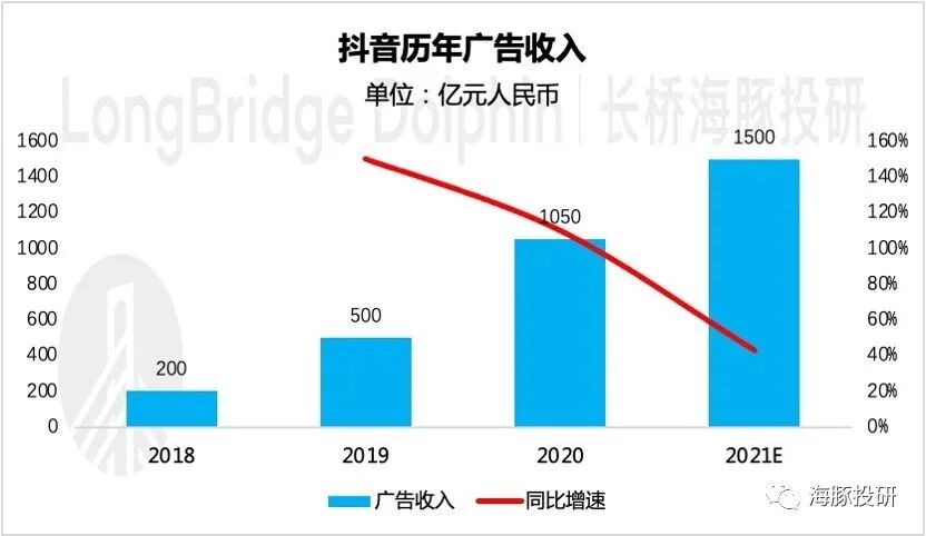 海豚君粗略估计视频号的潜在商业价值至少能够达到1000(抖音 2020 年广告收入)*(6%/12%)=500 亿的年收入水平。