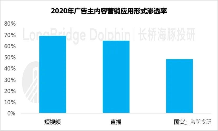 在短视频和直播上,内容营销是品牌广告预算增加的主要方向。据新榜数据,未来一年中有 52% 的广告主将继续增加内容营销预算。