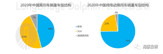 a. 轿车系列:计划依次推出ET7/ET5/ET3,复制SUV的产品战略,从高端切入,逐步渗入中端,最终实现覆盖15-50万元的市场。其中首款轿车ET7已发布,预计2022年年初上市,车型亮点主要为半固态电池提升续航至1000公里、搭载激光雷达提升智能驾驶感知能力等,市场颇为期待。b. SUV系列:蔚来目前量产SUV主要覆盖30-50万元的价格区间,蔚来的ES3会将价格下探至20万元的水平,帮助公司进一步提升市占率。2020年中国SUV和轿车车型的市占率分别为47%、46%,基本各占据半壁江山。蔚来目前量产车均为SUV,这意味着公司在接近汽车市场一半容量的轿车市场中还是空白。具体到纯电动乘用车销量结构上,2020年纯电动乘用车中的SUV和轿车占比分别为22%和75%,轿车占比更加高。因此,蔚来轿车车型的推出,以及价格的进一步下探,蔚来产品覆盖的市场空间会有大扩张。小鹏目前量产两款车,SUV和轿车齐头并进。G3作为首款车,表现相对中规中矩,第二款车P7是很好地帮小鹏打响品牌知名度的一款车型。- 2019年量产交付G3,紧凑型SUV,定价15-20万元;