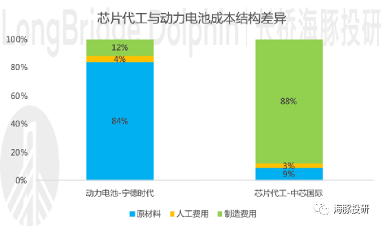 海豚君认为,宁德时代的逻辑是比台积电弱的,动力电池制造和芯片制造在核心要素上存在本质差异(如下图)。