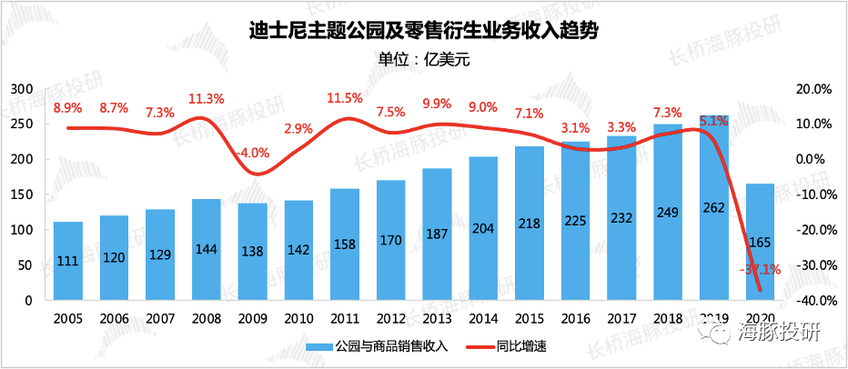 前几天(9月20日),北京环球影视城正式对外开放,尽管价格不菲,但开园首日门票还是1分钟售罄。海豚君注意到,早在内测的一个月期间,环球影视城就人气爆满,丝毫没有受到疫情反复的影响。不少经典IP分区比如霍格沃茨学院、侏罗纪世界、变形金刚等,甚至需要排队几个小时才能进去参观体验。说到主题公园,老大还是得看迪士尼。在2019年的一份全球主题公园TOP10榜单中,华特迪士尼集团依然荣居榜首。但整个迪士尼更像是一个娱乐王国,主题公园只是它其中的一个模块,其收入贡献已经连年走低,去年更是受到疫情的影响,占比已经下降到了1/4。如今,迪士尼已经发展为一个毋庸置疑的全产业链娱乐巨头,从上游的内容制作、发行,到下游的渠道以及衍生业务,均有涉猎。去年疫情,迪士尼的主题公园和影视娱乐两大业务遭受重创,收入分别下滑37%、55%。股价在3月情绪触底后强势反弹,在大宽松环境下,迪士尼也表现不俗,股价甚至创了新高,娱乐巨头霸气尽显。对比国内泛娱乐的“惨状”《泛娱乐上半年综述》,虽然国内外市场环境差异大,但通过回顾一下全球娱乐巨头的成长路径,对于国内很多号称要打造中国版“迪士尼”的公司存在一些借鉴和学习意义的。本篇海豚君将开启华特迪士尼集团的研究,梳理其业务版图及商业模式,并给出估值判断。说到迪士尼,你的第一印象是什么?米老鼠、唐老鸭?还是数不清的童话公主们?作为一家从1957年就上市的公司,创立百年成长为一个3000多亿美元的全球巨头。如果不考虑分红,迪士尼的这个增值速度和现在动不动就跑步上市,随便估值就上千亿的互联网公司比起来,显然非常一般。但并不妨碍迪士尼也曾经受到过股神巴菲特的青睐。1965年,迪士尼总市值不足9000万美元,账面上现金充足,但市盈率却不足6倍。巴菲特花了400万美元买下了迪士尼5%的股份,但一年后就立马卖出了。虽然这一笔获利颇丰,但如果拉长时间周期,持股至今没卖的话,相当于55年3500倍,年复合收益率16%,这笔投资绝对可以入选巴菲特前十大操作。如果迪士尼自己也是一位公主,我想,在股东眼中,这位公主一定是美的,美在经久不衰的一个个动画角色,美在持续扩张的业务版图,美在几十年不断增长的业绩。哪怕是在异军突起的现在,如果不是新冠疫情的冲击,迪士尼的增长童话似乎依然能够讲下去。都说人美分为“皮相美”和“骨相美”,迪士尼这位快百岁的公主,又是哪种美法?海豚君在回顾了迪士尼的发展历史后,可以试着去解答一下了。迪士尼旗下IP众多,数量规模居全球第一。这不仅得益于华特迪士尼时期,旗下工作室的疯狂制作,也靠着艾格时期的全球买买买战略。华特和艾格分别是迪士尼的创始人CEO,和近20年的CEO(2005-2019)。两人虽然输出IP的方式不同,但在涉及IP内容对迪士尼的重要性上,两人的想法是一致的。与中国目前主要的娱乐龙头主要从“流量渠道”的出身不同,迪士尼是从“内容制造”起家的。20世纪30年代的迪士尼,可以说是一个疯狂的IP输出机。从1923年至1940年期间,迪士尼创作了多个经典动画角色,除了开头提到的公主们,还有幸运兔奥斯瓦尔德、米老鼠米奇、唐老鸭、小熊维尼、布鲁托等等至今还耳熟人心的经典IP。色调明亮、内容紧张刺激是早期迪士尼动画的主要风格。同时,不惜成本对内容精益求精的态度,也使得市场上形成了“迪士尼出品,必属精品”的品牌印象。迪士尼笔下的一个个讨喜的动漫角色,给刚刚经历经济萧条时期的美国观众们,消除了痛苦,带来了欢乐和希望。自此,迪士尼从神仙打架的好莱坞中跻身而出,开始展露头脚。这么多的经典高人气IP,给迪士尼带来的财富是永久的。但华特也曾被合作的影视发行公司摆了一道,由于未完全重视IP的所属方问题,在米老鼠推出之前的动画IP版权被影视公司抢走了。自此之后的所有发行合作中,华特就坚持迪士尼独自拥有这些IP版权。反观2005年开始艾格走马上任后的15年,虽然迪士尼工作室也出了一些经典动画角色和剧片,比如2013、2019年的《冰雪奇缘》系列等等。但实际上05年之后迪士尼出品的动画电影中,口碑票房双爆的往往都是后来收购的原外部平台输出的作品。你可以说迪士尼自己的IP输出能力下滑了,但CEO艾格对皮克斯、漫威等优秀工作室的收购,更多的是在当时竞争对手时代华纳与美国有线联手后,对前任CEO艾斯纳所犯错误的快速补救。1970年代以及艾斯纳执掌后期21世纪初,迪士尼发展陷入泥潭的共同问题——对上游IP制造过于轻视。在这期间,不仅动画部门员工一批批出走,艾斯纳的傲慢态度也使得皮克斯动画工作室与迪士尼近10年的合作关系破灭。皮克斯动画是乔布斯组织成立的,在与迪士尼合作期间,输出了《玩具总动员》系列、《怪兽电力公司》、《飞屋环游记》、《机器人总动员》等等口碑票房双爆的动画影片。一边是渠道变现的源源财富,一边是内容端的收缩以及与合作伙伴的交恶,后期的迪士尼很明显选择了一只脚走路。艾斯纳对IP创作持续的不重视导致当时迪士尼的第二大收入支柱——以迪士尼电影动画发行收入为主的影视娱乐(电影发行、家庭数码、授权分发及其它),在2000-2003年期间均低于全球增速。因此在艾格任命CEO的15年期间,一直致力于持续扩大迪士尼的IP库。- 与皮克斯(乔布斯)重修旧好,并且在2006年直接花74亿美金买下皮克斯动画工