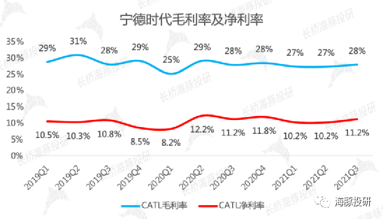 1、整体业绩表现超预期。公司第三季度营收在动力电池、储能业务双轮驱动下,基本符合预期,而季度归母净利润首次站上30亿元,同比增速130%,与营收增速持平,在原材料涨价挤压盈利的担忧中,明显超预期。