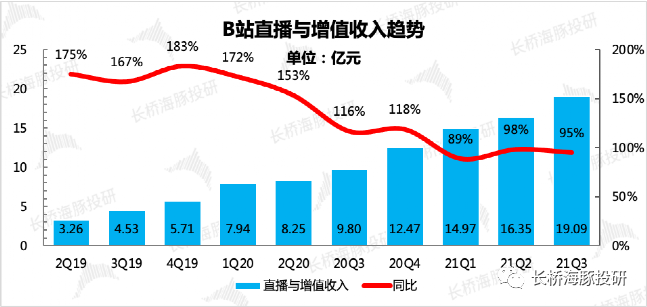 三季度直播与增值业务实现收入19亿元,同比增长95%,延续二季度的高增长趋势,超出市场预期的80%增速预期。