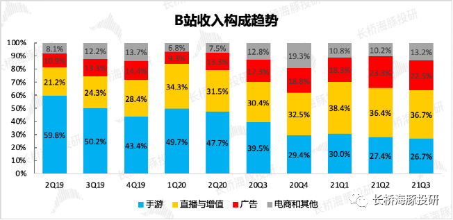 三季报的主要亮点在于用户指标以及增值服务上,广告变现算是预期内的高速扩张。但游戏已经成为近两个季度表现都令人失望的细分业务,作为以前B站的主要收入和现金来源,B站自研能力带来的劣势在行业逆风、竞争加剧下更加明显。
