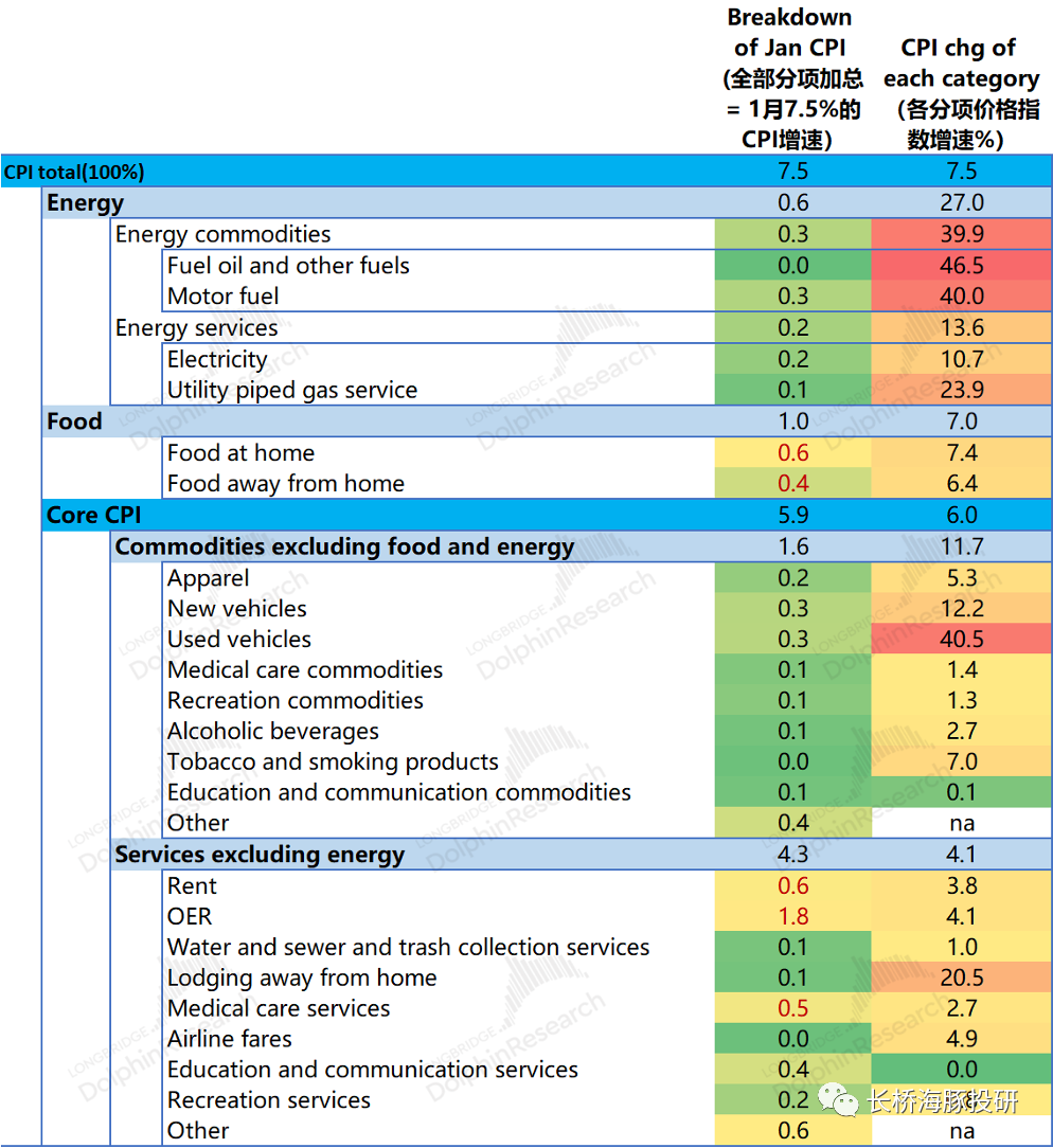 如长桥海豚君先前在《亚马逊财报点评》中的判断,美国的通胀压力是沉重且持续的,且仍在飙升。在最新美国CPI数据中,22年1月美国整体CPI同比增长达7.5%,再创新高。