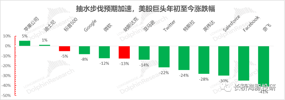 而海豚君综合上述分析来看,认为短期通胀惯性上冲后导致加息速度再超预期。此外加息之下,宏观经济也存在边际下滑的可能。这种情况下,杀估值很容易成为主流、