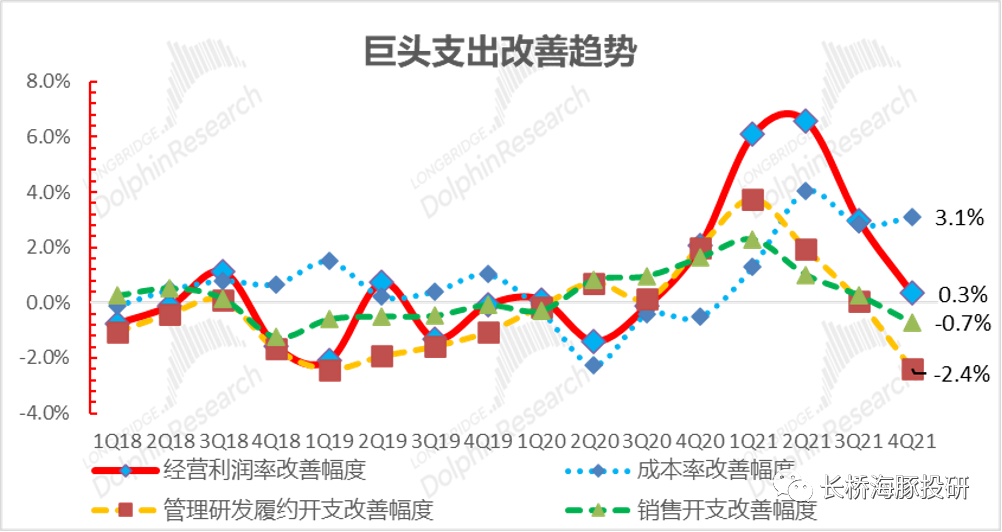 在薪酬通胀的背景下,巨头对内没有压榨员工的能力和动力,导致与人力强相关的费用相对收入明显飙涨。而销售开支一定程度上与广告有关,整体需求带动广告上涨,企业销售开支也在水涨船高。