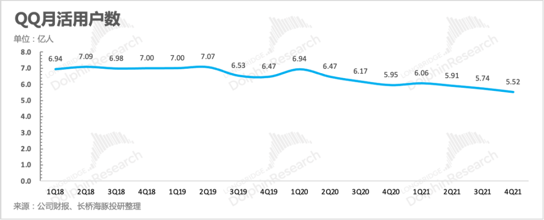 四季度微信用户继续缓慢爬升,单季净增用户600万人,整体生态非常稳健。但QQ就不一样了,用户流失速度加快。