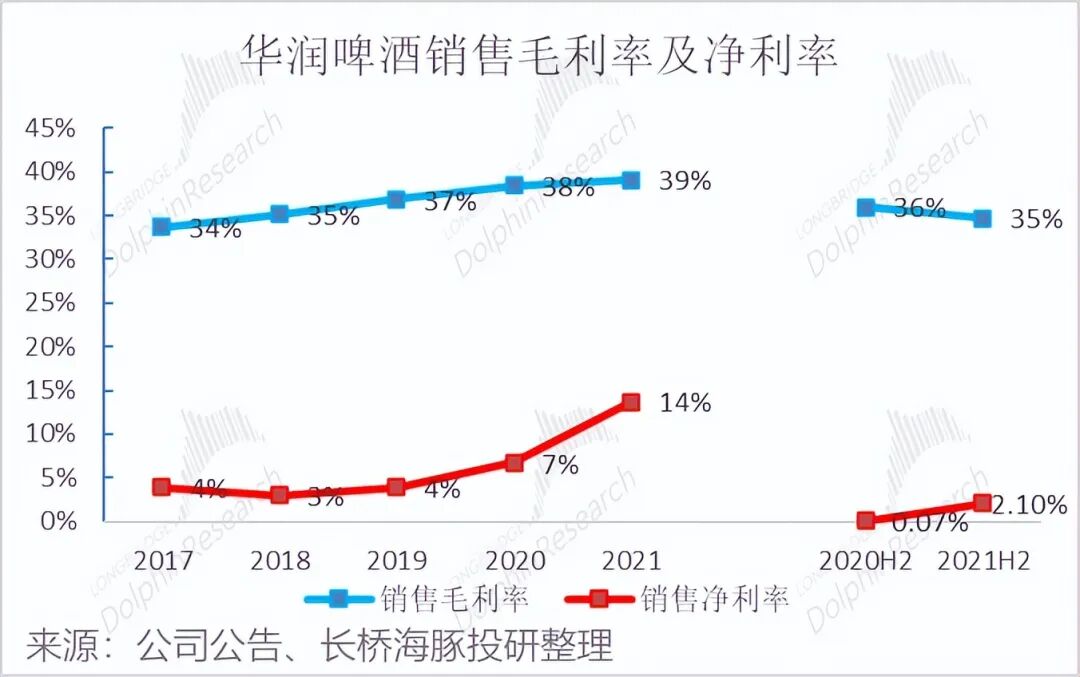 “啤酒茅”华润啤酒成绩单来了!尴尬的是,尽管股价经历了3月中上旬港股的流动性杀跌后,从它今日中午(3月24日)的最新年度业绩来看,短期或仍难得市场的青睐,但当下价值下探空间也十分有限:(1)21年全年实现营业额334亿元,同比增长6.2%,但看下半年增速较上半年增速转正为负,主要是疫情线下场景消费边际变差所致;(2)净利润46亿元,同比增加119%,基本符合此前发布的业绩预告区间,2021年下半年净利润2.9亿,20年同期业绩为0.1亿元。全年业绩增长主要为:a.根据搬迁补偿协议出让地块,获得初始税后补偿收益约人民币13亿元;c.固定资产减值和员工补偿与安置费用下降,抵消市场推广费用及销售员工成本的增加所致。(1)短线来看:虽然受下半年年销量拖累,但从全年的实际利润来看,恢复得还是较为迅速,长桥海豚判断下来,除了走中高端品牌路线之外,公司还提升成本及费用效益,以及出让土地权益所得溢利;(2)产品结构转型效果初现。华润啤酒2021年次高档及以上啤酒销量达187万千升,较2020年同比增长27.8%,占比整体销售提升明显,公司产品结构显著提升。从总销量看,华润低端啤酒在全国的销售量最多,但公司21年整体销量增速虽然未能转正(主要受2021年下半年疫情反复销量下滑拖累),但下滑速度整体得到控制,值得关注的是受中高端啤酒带动,整体吨价大致上升约7%,产品结构持续升级中;(3)涨价以平抑原材料成本提升。啤酒原材料和包材价格持续上涨,公司采取涨价措施以应对成本压力。据长桥海豚君的草根调研,公司2021年9月对勇闯天涯进行提价,我们预计提价需要2-3个月进行全国推进,因此2021年下半年提价可能无法完全抵消材料成本上升的影响,我们预计提价效果或将在2022年旺季有所反应。(4)2021年下半年表现不佳为短期因素。下半年以来在疫情点状反复影响下公司销售量短期承压,同时原材料价格上涨压力逐渐显现,同时公司作为北京冬奥会的主赞助商,品牌广告费用投放力度加大,多因素叠加导致经营性利润略低于预期。对中概公司财报研读有兴趣的朋友,欢迎添加微信号"dolphinR123"加入投资研究群,第一时间获取财报解读及电话会议纪要。2017 年至2021年,啤酒收入由297 亿人民币增长至334 亿人民币,年化复合增速在5%左右,2020 年受疫情影响收入有所下滑,2021年增速基本已经恢复至疫情前同期正常水平。公司净利润在2018 年以前呈现下滑趋势,2019 年恢复增长至13 亿,同比增长33%,前期净利润的下滑主要源于公司为优化产能和组织再造所支出的员工补偿及安置费用,剔除产能优化亏损和固定资产及存货减值后的净利润在19~21年保持加速态势。公司啤酒整体销量在过去几年维持了较为稳定的水平,相比于行业整体下滑的态势,公司的实际市占率在逐步提升。盈利能力来看,尽管原材料成本压力持续,但在高端化带动下2021年全年毛利率同比仍继续上升,净利率在 2018 年产能优化后提升明显。毛利率从2017 年的 34%上升至 2021 年的 39%,净利率从 4%升至14%。公司盈利能力的提升主要受益于公司的品牌重塑,产品结构的提升,中高端产品销量增加带来的平均销售价格的上升。高端化拉动吨价高位数提升。超级勇闯全年销量增长超50%,喜力增长20%-30%,纯生及马尔斯绿实现双位数增长,黑狮白啤高速增长,勇闯在疫情及提价等因素影响下,预计销量持平或小幅下滑,部分低端及主流产品在高端化战略下亦有所下滑。公司销售费用率稳中有升,下半年公司较上半年提升明显,主要与冬奥会相关费用投放有关,下半年公司产能优化、组织效率提升带来继续带来管理费用率下降。公司东区的涵盖范围较为广泛,因而收入占比最高,始终贡献一半左右营收,在相对弱势的南区、中部地区有望通过喜力这把利剑实现市占率的突破。公司在2021年雪花渠道伙伴大会上表示要打好几场“大仗”。1)高端增长方面强调“抢+扩”,针对大高档容量小、但雪花份额高的(如辽宁、安徽、四川、贵州等)推进大高档扩容,针对雪花份额不高、但高端容量较大的(北上广等)提升大高档销量,对中间市场采取大高档和总量增长双策略。2)在主力品种方面,坚持推进“1+1”、“4+4”产品组合,推动纯生向百万大单品冲刺,同时推进轻骑兵等多元品类。3)加强全国连锁、夜场、商圈等制高点掌控。主力产品动销方面,加强广告推广、渠道营销活动落地,同时推进新客开拓、提升现有客户的高端销售能力。展望2022年,长桥海豚君认为公司短期看提价催化,中期看疫情恢复和成本下行。短期来看,公司21Q3提价效应有望在22Q1后全面体现,旺季到来前不排除进一步提价催化的可能。中期来看,疫情和成本压制公司短期盈利,疫情影响消退后,销量有望恢复,同时高端化进程有望加速,若成本下半年开始下行,业绩亦有望加速释放。本文为长桥海豚投研原创文章,如需转载请添加微信:dolphinR123 获得开白授权。