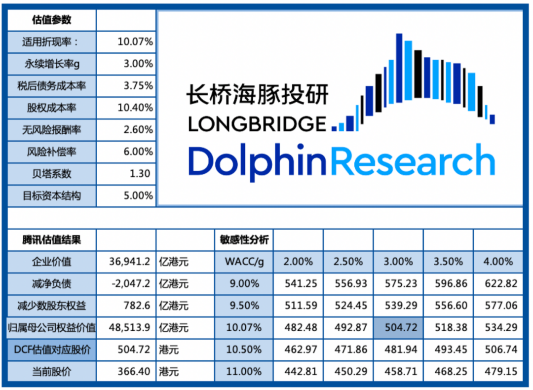b.平台型公司。主要发行外部内容产品,或少量的自制内容产品,但本质上业绩增长靠的是流量变现。比如B站、快手、腾讯音乐、爱奇艺、阅文的在线阅读。而这些平台型公司中,爱奇艺、腾讯音乐的产业格局最差,对上下游均没有较强的议价能力。而阅文、B站、快手的上游,市场较分散,单一个体对平台几乎很难有牵制,因此业务模式会相对友好一些。泛娱乐平台公司中真正有壁垒的,只有依附微信的高频使用而拥有难以撼动的社交地位的腾讯。其他平台的目前优势,理论上都可以通过长期投入去追赶。只不过优势有高低之分,需要的投入成本也千差万别,因此也会形成“暂时的壁垒”。比如字节的算法壁垒、B站的社区文化壁垒等等。而在内容端的娱乐公司而言,由于内容引爆的不确定性高,没有谁可以是永远的赢家,只能通过过往的成功经验以及内容投入高低来判断爆款率,腾讯、网易在游戏领域有一定的优势,但还谈不上壁垒。虽然部分娱乐公司们正在尝试跨行业培育第二曲线,比如腾讯的云、爱奇艺的奇遇VR以及各家都跃跃欲试的“元宇宙”。但无一例外,这些跨界业务还处于高投入期,并且不能给到业绩做像样的支撑。因此如果从短期来看,这些娱乐公司实际上并没有真正意义上的第二曲线,只有“待变现/正在高速变现的流量”,这些业务可以给公司短期业绩带来可观的增速,或者增强现有业务的防守能力,但对于公司长期估值增加并不会贡献显著的提升。比如防守维度的腾讯视频号,以及流量进阶变现的B站广告、快手电商等等。泛娱乐平台公司,目前的出海进展都不是很顺利。由于没有自制内容,平台出海更需要依赖本地化运营能力和规模效应,本质上是靠优秀的商业模式出海,但这并不足以形成较高的壁垒。而对于内容产品公司,由于东西方文化隔阂,大部分中华文化内容更适合在东亚及东南亚文化圈延展。除此之外,长期监管的约束,也会影响进击欧美非英语文化内容市场的力量。比如长视频、音乐、网文等。目前来看能够行业大规模出海无阻力的,只有游戏走了出来。因此腾讯、网易与海外巨头的深度合作关系、手游研发优势,都有助于它们加速出海。因此,基于以上逻辑筛选出来的标的,海豚君下面将进行详细的分析判断,其他标的则简单陈列观点。对上述公司跟踪研究有兴趣的朋友,欢迎添加微信号"dolphinR123"加入投资研究群,第一时间获取海豚深度研究报告,与投研老鸟畅谈投资机会。这两年,腾讯的微信商业化和投资性资产一直被市场视为最后的金矿,但一个代表主业的长期增量空间,一个代表资产增值后的投资收益,对于腾讯来说,重要性不同。更何况,由于监管的引导,当下的投资环境并不如前十年舒适。因此,回归主业将是未来腾讯不断加强的必修课。关于投资版图的分析,海豚君已经在此前多篇文章讨论过,可按需回顾:这里海豚君将不再展开论述腾讯的投资版图,而重点关注主营业务——广告、游戏、企业服务、金控科技。在腾讯现有利润中,主要贡献的业务游戏、广告、金科,前两项在今年都会遇见不小的逆风。尤其是广告业务,一方面有宏观环境低迷的影响,另一方面媒体广告的市占率仍然在被短视频等新渠道侵蚀。另外,三项业务在今年上半年均有高基数的压制,因此我们可能会看到业绩增速继四季度的下滑13%之后进一步恶化,而下半年才有可能随消费恢复和高基数影响降低,显得数据好看些。市场寄希望给予反击的视频号,将于今年年底开展公域商业化,即信息流广告。目前主要以创作者的定制广告为主,而对于这部分广告,腾讯平台并没有抽取分成。根据调研信息,视频号的广告加载率与抖音、快手相比非常低,而明年信息流广告正式铺开后,腾讯计划仍将保持较低的加载率水平。海豚君认为,考虑到微信生态整体的低商业化风格,以及视频号流量倾斜后,对朋友圈、公众号时长的挤压,进而影响朋友圈、公众号等原社交广告的变现,因此抵消后整体业绩可能短期难看到非常明显的改善,与此同时,视频号随着生态不断完善,视频发布量、互动量也会指数级增长,带来的是更多的服务器运营压力。因此今年我们还将看到广告毛利率进一步走低的变动趋势。但推进视频号的扩张和商业化,更多的意义在于完善生态经济(创作者、商家、用户),从而遏制住字节、快手的竞争威胁。除此之外,视频号开启商业化,也会让市场对腾讯的估值带来想象空间。对于视频号长期下能够带来的增量收入,海豚君估算假设如下:信息流广告收入=DAU*单用户日均时长/单视频观看时长*推荐页浏览占比*广告加载率*eCPM(1)稳态下视频号DAU达到7.5亿,对比当下微信生态整体用户数12.7亿,按照抖音、快手的用户粘性(DAU/MAU=60%来估算成熟期DAU)(2)稳态下日均时长60min,单个视频观看时长24s;(3)eCPM稳态下达到30元,对比当下的抖音平均25元,品牌广告主40元,快手的平均18元,海豚君认为微信生态的用户粘性高、用户画像等年龄及城市分布更为完善,因此应该匹配更高的潜在ROI。再加上本身广告报价随经济同步提升,因此我们认为2026年视频号eCPM达到30元问题不大;(4)推荐页(公域流量池)视频观看量占比为60%,当下抖音水平为70%,由于微信的私域属性更强,因此略有调低;(5)稳态下信息流广告加载率为5%(不包含互选平台的创作者定制广告)。目前抖音、快手的加载率分别为15%、10%,相对同行