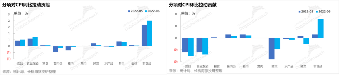 特别是从环比的边际涨价因素来看,食品当中与蔬菜、水果和水产相关的价格环比都在下跌,最核心的涨价因素就是非食品项目中的交通出行服务,而交通出行当中主要就是燃料价格涨幅比较夸张。