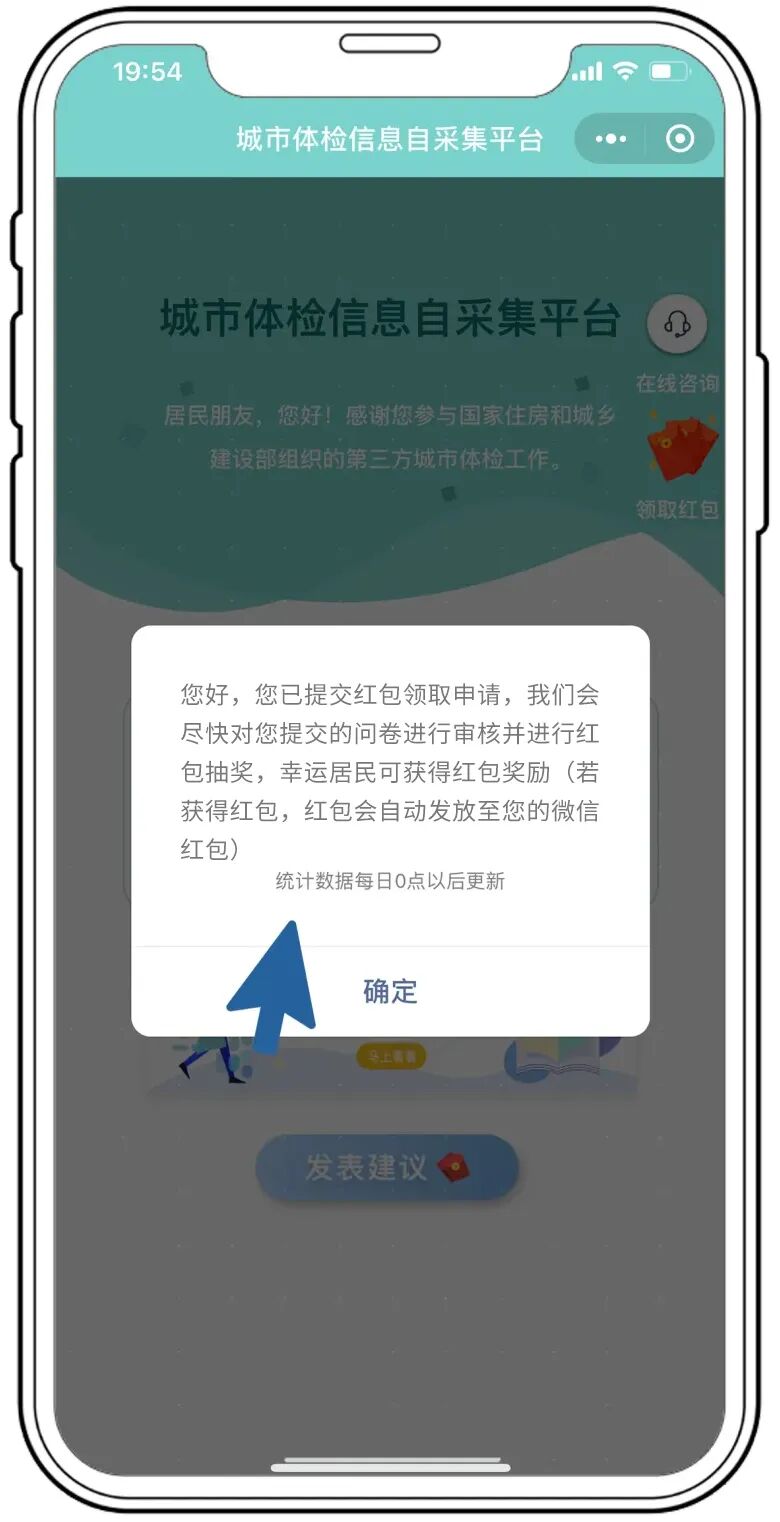 居民完成问卷并提交后,点击【领取红包】,等待审核。