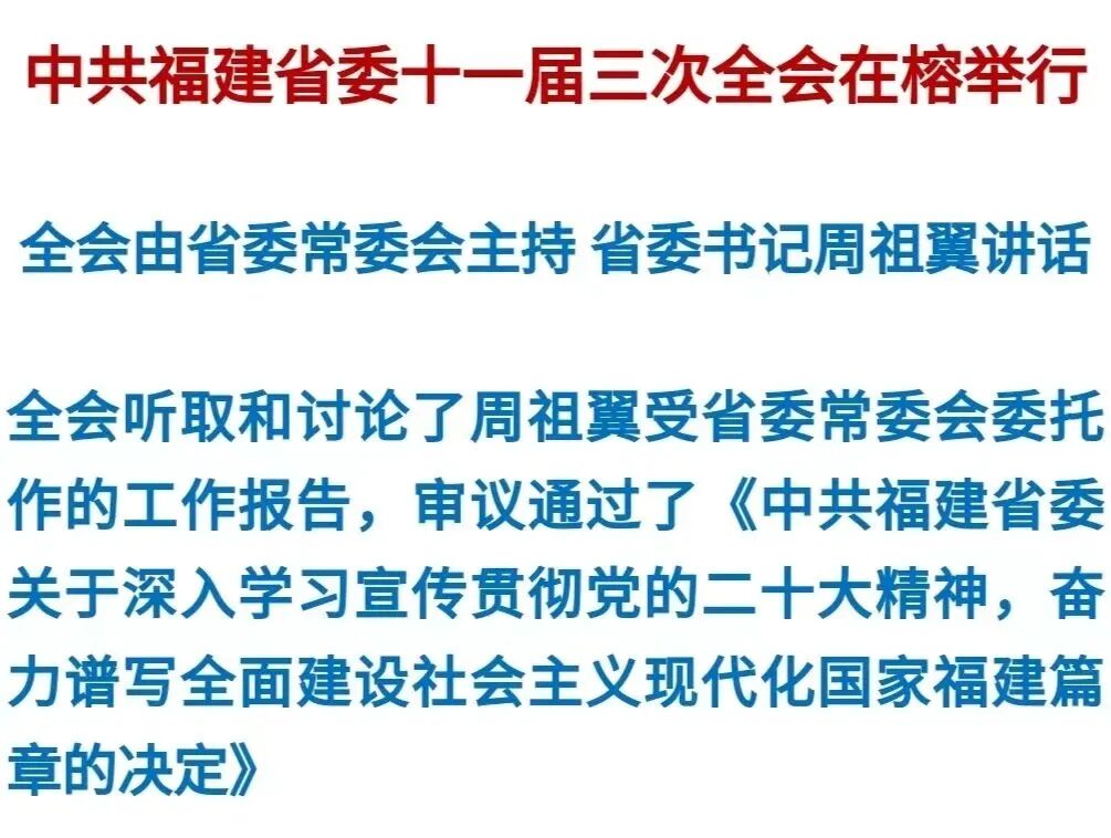 中国共产党福建省第十一届委员会第三次全体会议决议(2022年11月25日中国共产党福建省第十一届委员会第三次全体会议通过)
