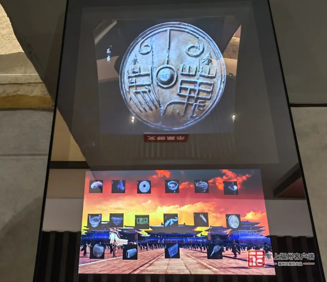 为了让观展者更好地感受到福州城市的历史变化,博物馆在馆内设立了多媒体电子屏,以多媒体形式还原了无诸在福州建立汉冶城的过程。占据整面墙体、辐射两边部分墙体,长近12米,高近4米的多媒体电子屏,给观展者带来视听上的美感与震撼,沉浸式体验沧海桑田的历史变迁。