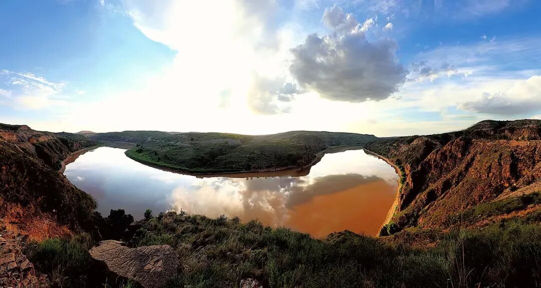 大河上下,蒙地河口分水,中游矣。长城内外,乖险绝胜者,准格尔大峡谷也,谓之黄河三峡。