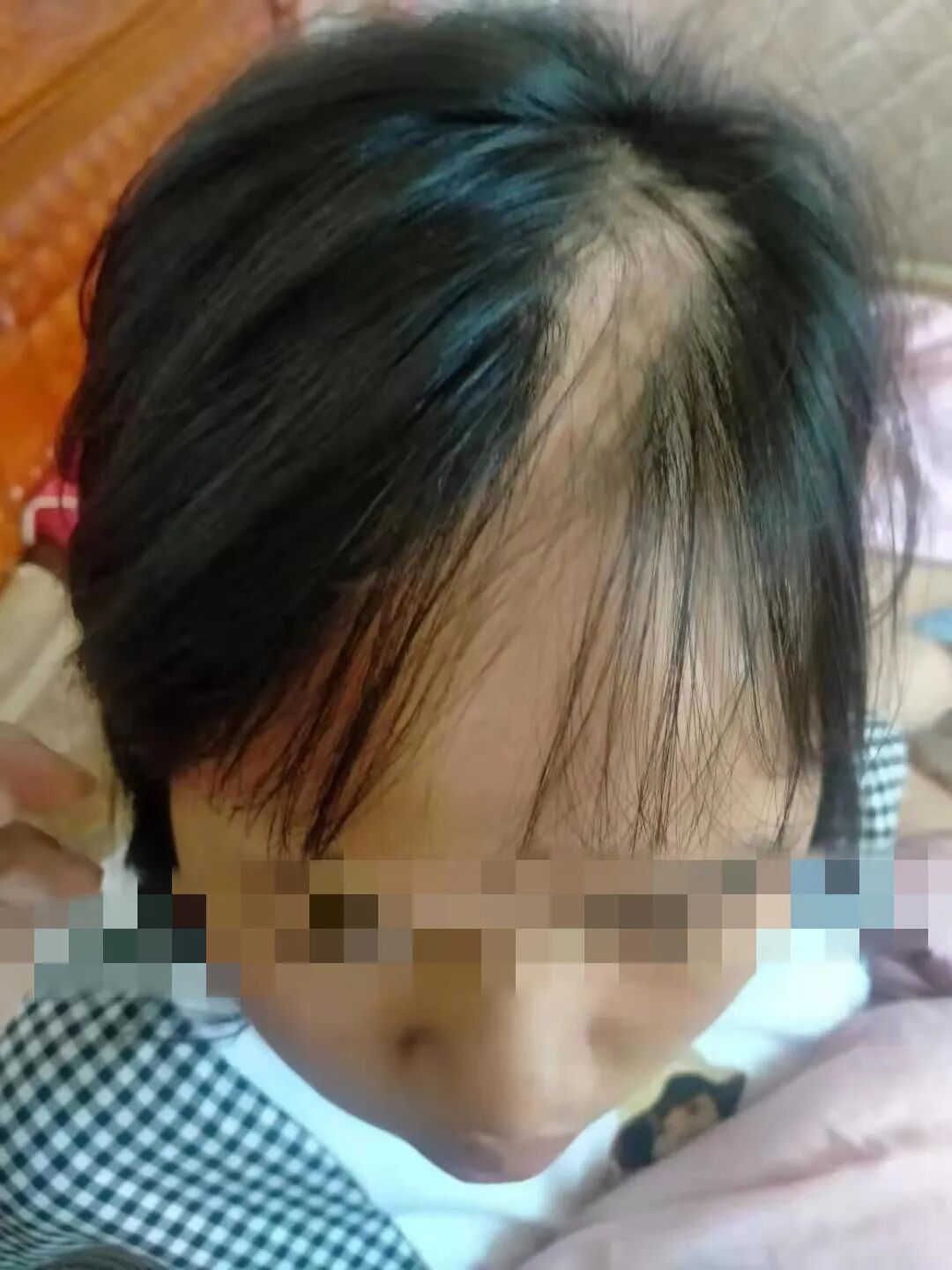 晓敏由于曾做过开颅手术 头顶没有头发