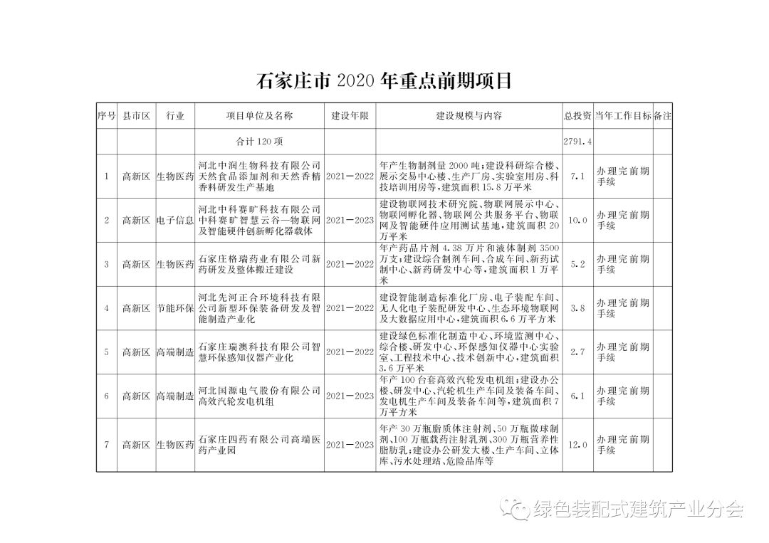 石家庄市人民政府办公室 关于印发《石家庄市2020年重点建设项目计划》的通知