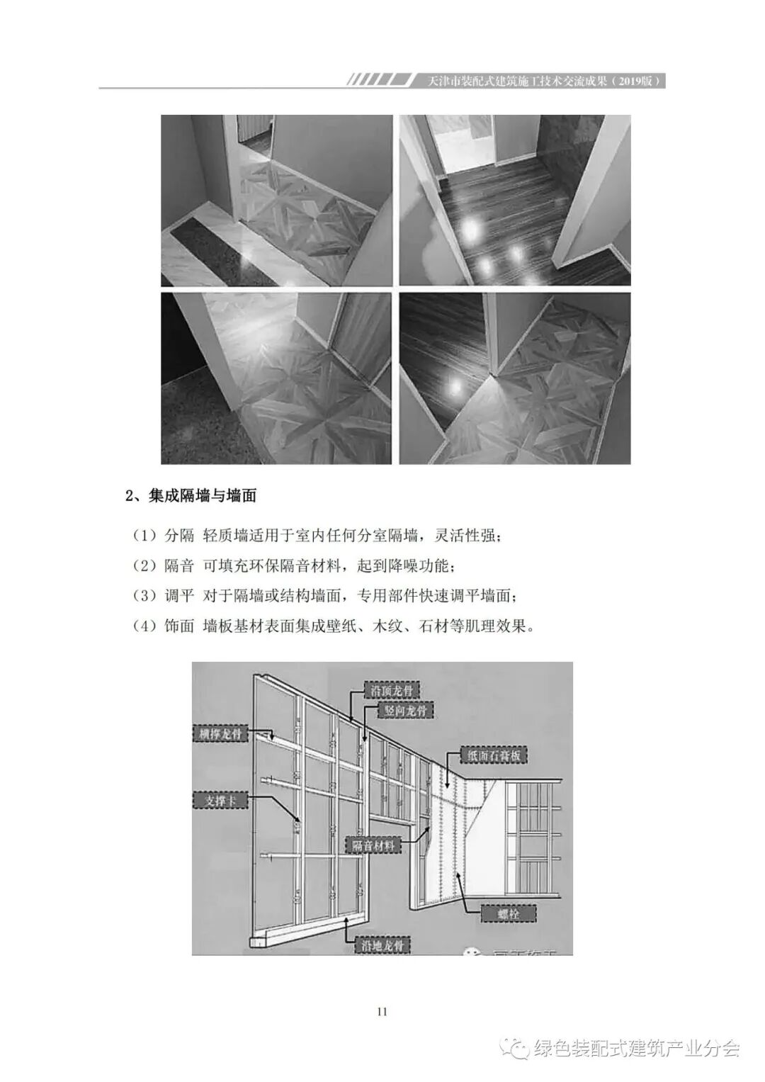 2019年天津市住建委绿建中心与建筑业协会结合装配式建筑的行业特点,开展了“装配式示范工程推动活动”,对装配式建筑示范项目和关键技术进行了一系列调研交流和观摩培训,取得了良好成效。为更好的助推我市装配式建筑行业健康发展,系列活动结束后主办方立即组织开展“实例汇编”编制工作。汇编以天津市装配式示范项目和其他装配式实用技术的“成果案例”为主题,邀请天津本市在装配式建筑施工领域取得一定成果的企业,从主体结构、外围护、内装、部品的全过程施工进行经验分享,探索装配式建筑实践中的技术创新。天津市住建委绿建中心和建筑业协会发挥各自的优势和专长,在总结和提炼系列观摩和技术交流工作的亮点和技术成果上形成了《天津市装配式建筑施工技术交流成果(2019版)》,旨在从具体实施的角度,客观反映目前我市装配式建筑发展的水平,为今后的推广应用提供借鉴依据,增进行业技术交流,对天津市装配式建筑的发展起到很好的引领、推动作用。