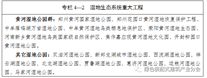1.沿黄生态廊道建设工程。启动郑州至开封段百公里沿黄生态廊道和黄河新乡段170余公里生态廊道建设,开展郑州、开封、新乡河滩综合治理试点。通过实施湿地修复、引水保湿、退耕还湿等工程,打造河流湿地与引黄湖泊湿地相结合的湿地公园群落。