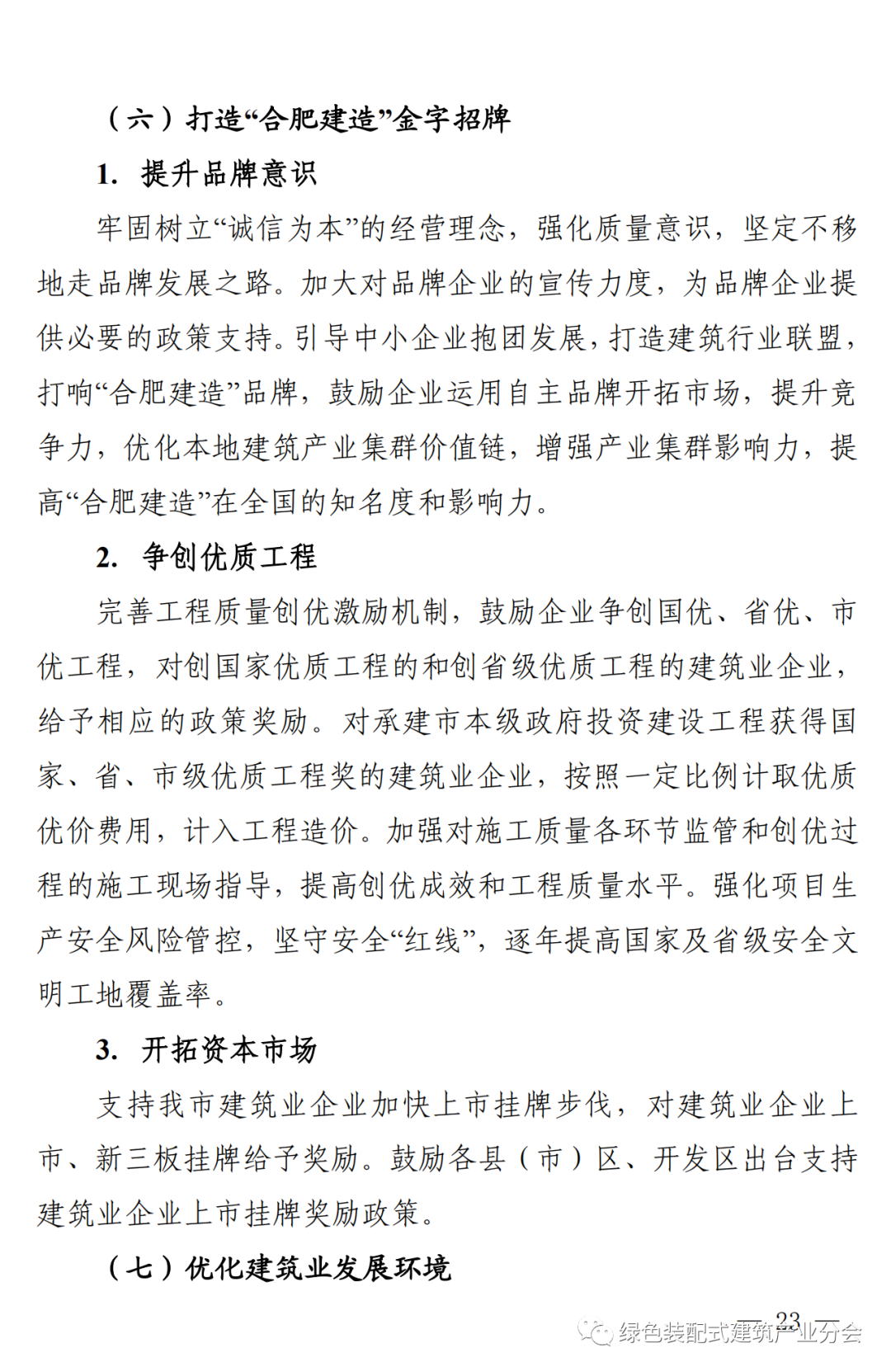 到 2025 年,装配式建筑进一步发展,全市实现装配式建筑占新建建筑比例达到 30%以上,创建国家级装配式建筑示范基地10 个以上;加快推进装配式建筑,进一步压实属地政府主体责任,抓好装配式建筑项目落地;深耕装配式建筑产业链,抓好示范基地示范园区、示范项目建设,全面推进装配式建筑发展;完善装配式建筑的工程造价体系、技术标准体系、市场推广体系、质量监管体系和监测评价体系;鼓励建筑企业生产装配式预制构件和部品部件,优先解决骨干企业装配式业务所需生产基地的建设用地。