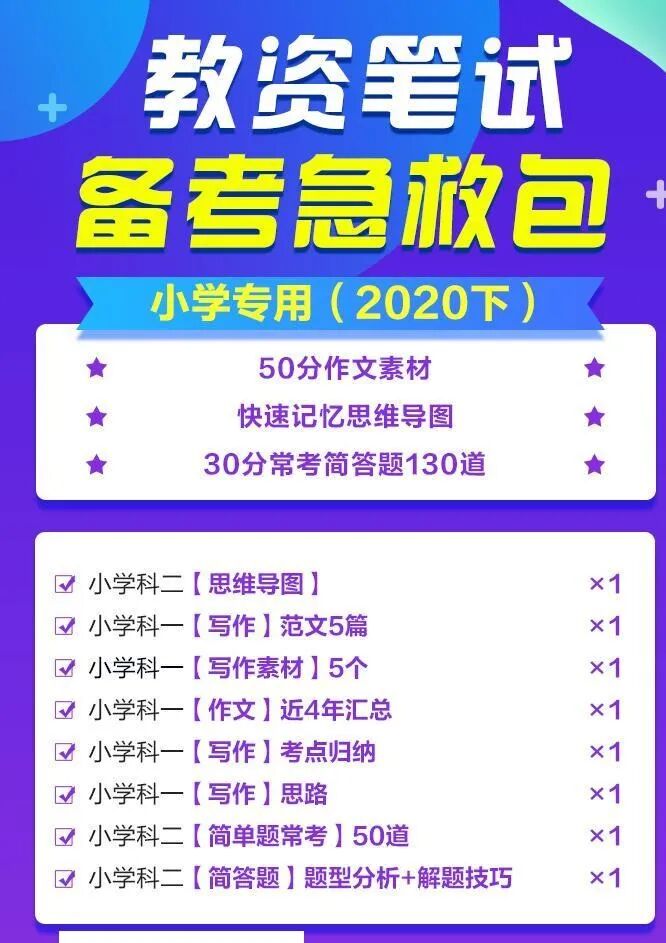 邀请 3 个好友后,就可以领到教师资格笔试所属学段对应的作文、思维导图、简答题等组成的急救包(电子版),在公众号中发放,请注意查收,及时下载。