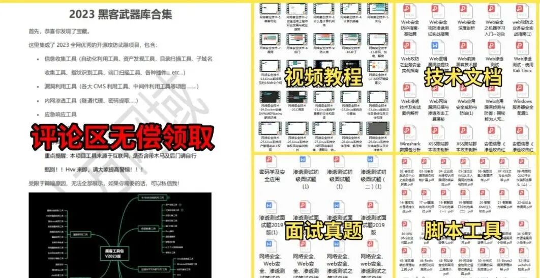 朋友们如果有需要全套《黑客&网络安全入门&进阶学习资源包》,可以扫描下方二维码免费领取(如遇扫码问题,可以搜索微信号添加)~