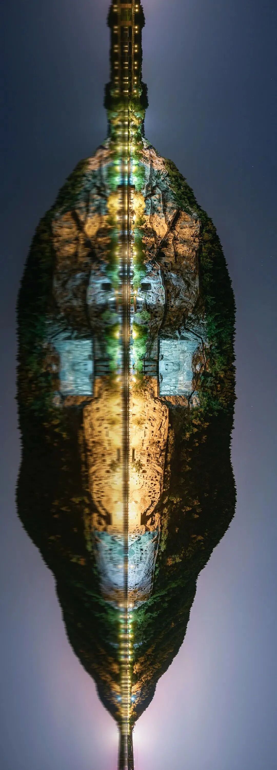 今人在当年的地基上,建起复原建筑。每晚通身闪亮的霓虹,彷佛在宣告这里曾有过怎样的辉煌